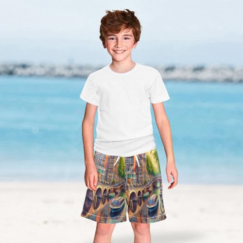HOT ! Ship Canal Trees Boys Swim Trunks Quick Dry Toddler Swimsuit Boy Swimwear Board Shorts Bathing Suits M Multi