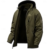 More information about Men's Graphic Cow Print Jacket Raincoat Shell Jacket Waterproof Lightweight Casual Sports Outdoor Camping & Hiking Embroidered Side Pockets Zip Front Fall Winter Hooded Long Sleeve Green khaki Dark