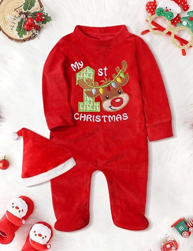 Von kilizo Baby Christmas Outfit My First Christmas Baby Girl Boy Outfit Footed Romper Santa Hat 2Pcs 1