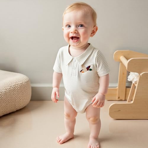 Baby Boy Polo Romper Mallard Duck Button Down Striped T-Shirt Onesie Short Sleeve Collar Bodysuit Summer Outfit 7