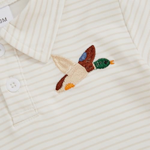Baby Boy Polo Romper Mallard Duck Button Down Striped T-Shirt Onesie Short Sleeve Collar Bodysuit Summer Outfit 6