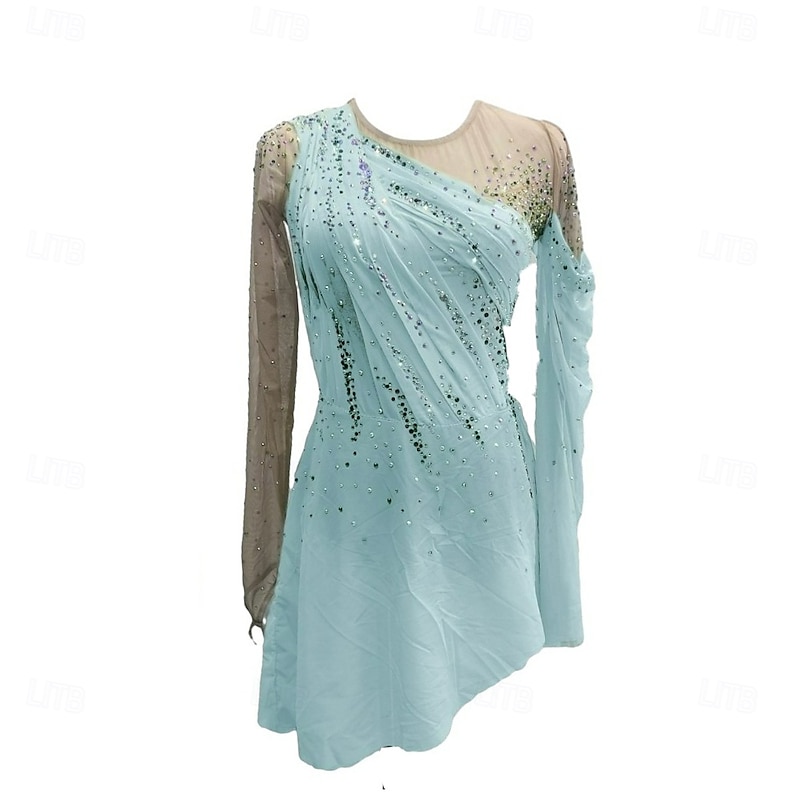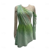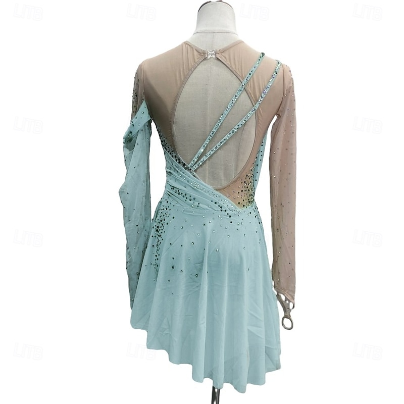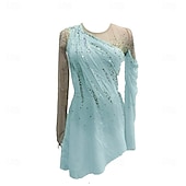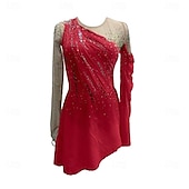More information about Figure Skating Dress Women's Girls' Ice Skating Dress Forest Green Red Sky Blue Patchwork Thumbhole Mesh Spandex Stretchy Training Practice Professional Skating Wear Crystal / Rhinestone Long Sleeve
