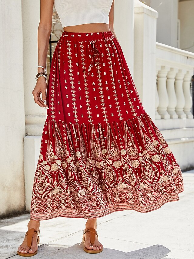 HOT ! Women's Swing Bohemia Fashion Casual Maxi High Waist Skirts Graphic Print Micro-elastic Street Daily Red Blue Green Summer Rayon