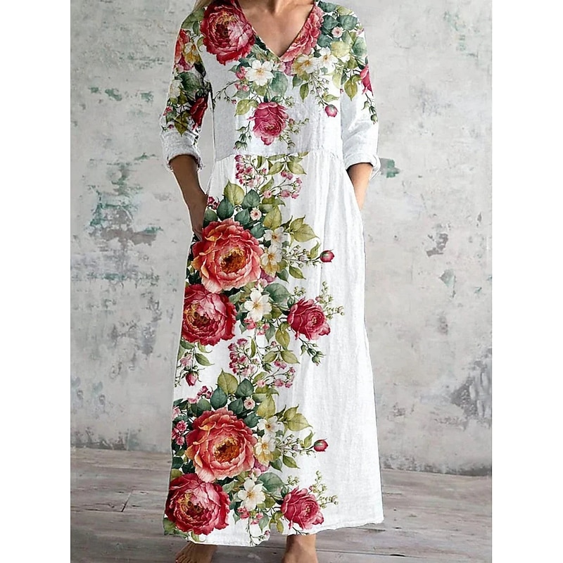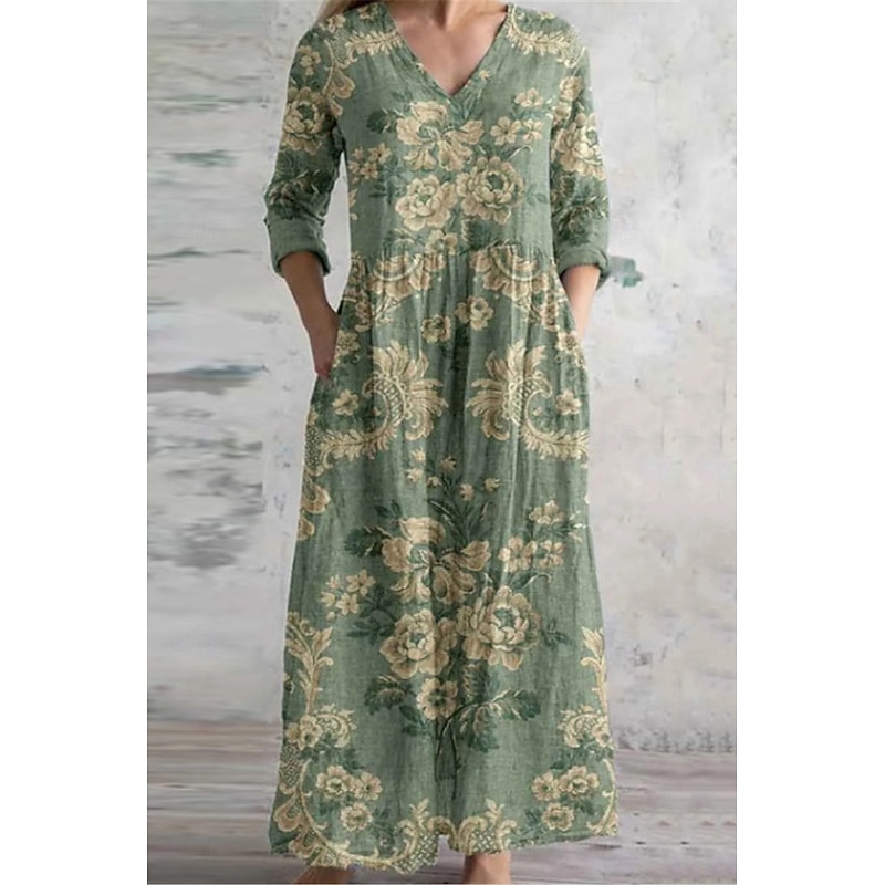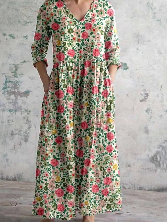 More information about Women's Long Dress Maxi Dress Casual Dress Summer Dress Boho Dress Fashion Vacation Daily Weekend Regular Fit Floral Long Sleeve V Neck White Light Green Pink Blue Summer