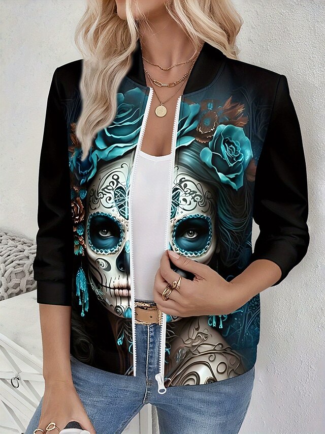 $28.99 - Women's Casual Jacket Warm Quick Dry Zipper Pocket Elegant Fashion Daily Simple Skull Vacation Casual Daily Holiday Regular Baseball Collar Regular Fit Long Sleeve Outerwear Blue Purple Green Spring 2025. Shop for cheap Halloween Outerwear online? Buy at lightinthebox.com on sale today!