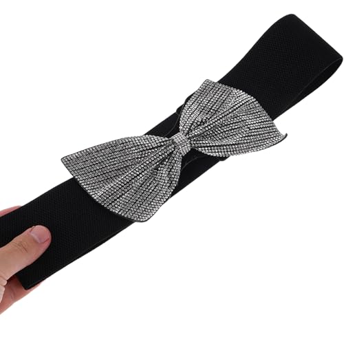 Lurrose Ladies Wide Elastic Waist Belt With Rhinestone Bowknot Vintage Stretchy Wide Bow Waistband Cinch Belts for Dresses Skirts And Pants 6