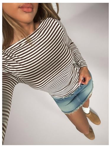 More information about Milumia Women's Y2k Striped Boat Neck Top Fitted Long Sleeve Knit Tops