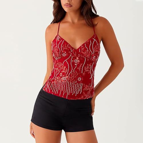 • Style: Women sequin tops, womens summer tank tops, embellished tops, open back glitter tops, low cut halter top, vintage going out top.