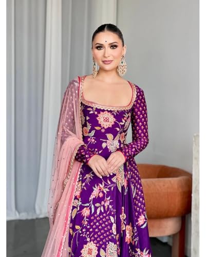 • Indian Women'sFaux Georgette Top Tunic Printed Kurta with Palazzo & Dupatta