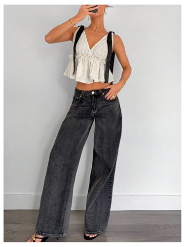 HOT ! Milumia Women's Y2k Bow Knot Babydoll Tank Top Textured V Neck Sleeveless Ruffle Crop Tops