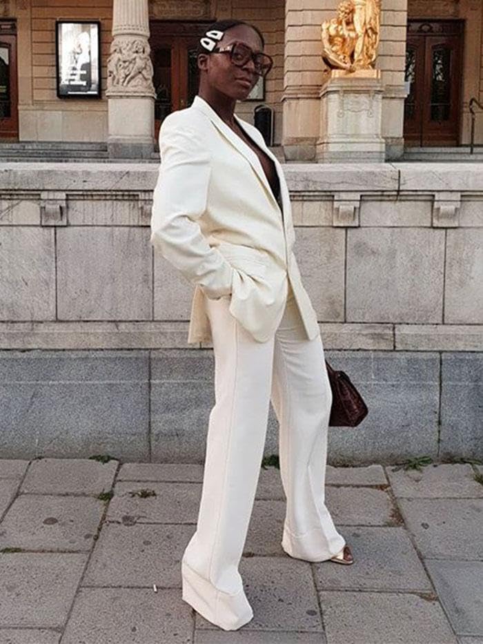 JinXuanYa Women's Suits Two Piece Notch Lapel Slim Fit Work Suit Lady Outfit Casual Jacket and Pant 4