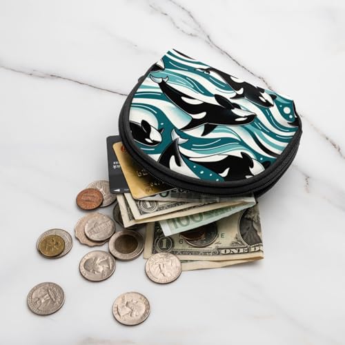 Portable Coin Purse Killer-Whales-Waves Mini Zippered Money Pouch Card Holder 1