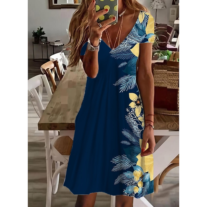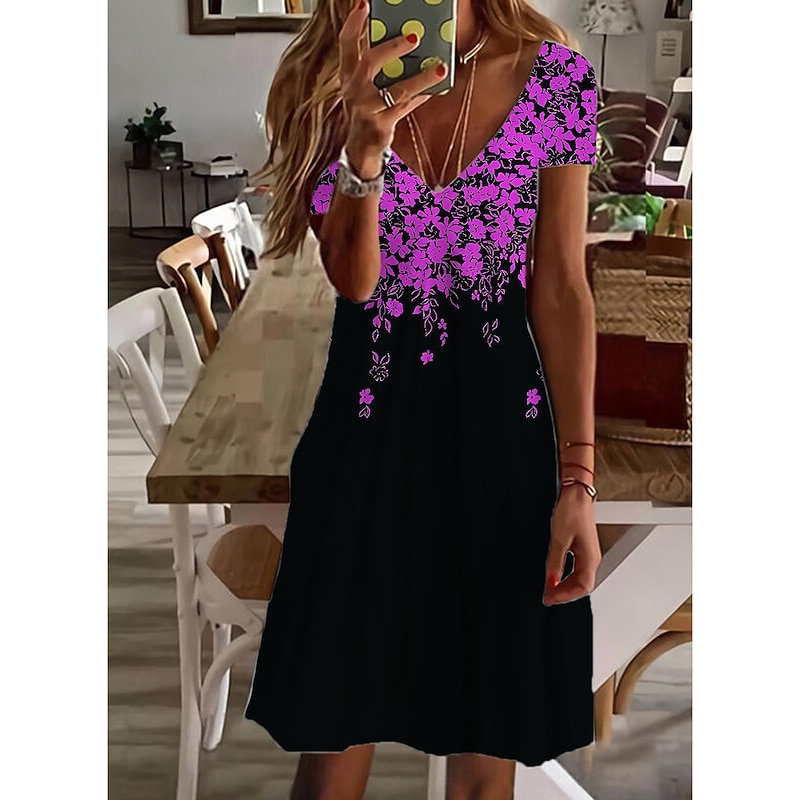 More information about Women's Mini Dress Petite Dress T Shirt Dress Tee Dress Sundress A Line Dress Cute Outdoor Vacation Birthday Regular Fit Floral Short Sleeve V Neck Black White Pink Wine Summer
