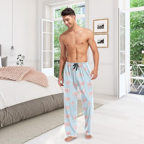 More information about Men’s Small Pink Bows Pajama Pants with Pockets, Comfortable Lounge Sleep Bottoms#325