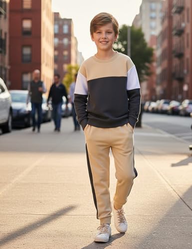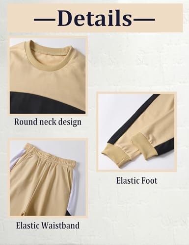 • Fashion Design: The long-sleeved hoodie and sports pants set features a unique color-blocking design that creates a layered visual effect. The stylish and eye-catching design includes an elastic waistband, allowing children to put on and take off the clothes easily while ensuring a comfortable and snug fit. This outfit offers freedom of movement for your boy and makes him stand out in any crowd.