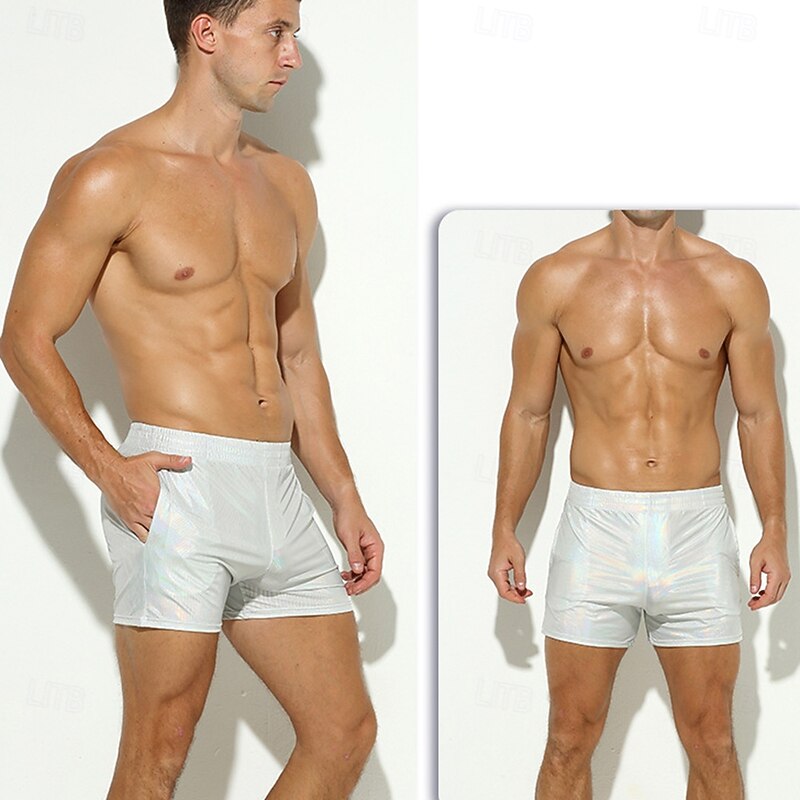 Retro Vintage 1980s Rave Shorts Disco Shiny Latex Patent Metallic Fancy Dress Men's Halloween Carnival Music Festival Pride Parade Gay Club Adults' Shorts Summer 7