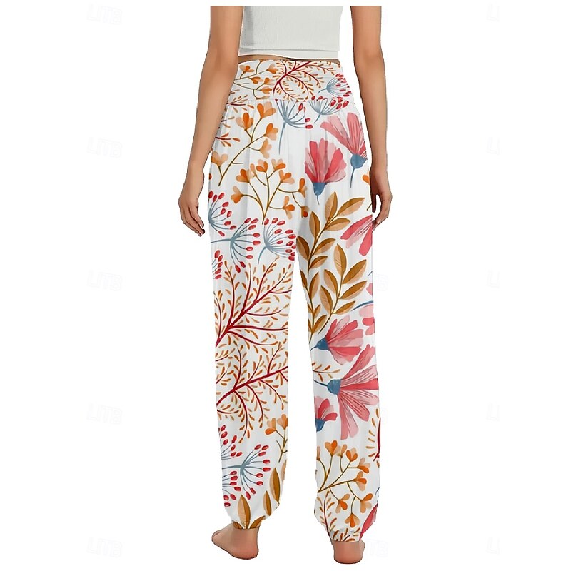 Women's Linen-Inspired Pants Wide Leg Pants Trousers Ethnic Style Casual Boho Full Length High Waist Floral Pocket Elastic Waist Printing Breathability Soft Micro-elastic Outdoor Yoga Light Green 25