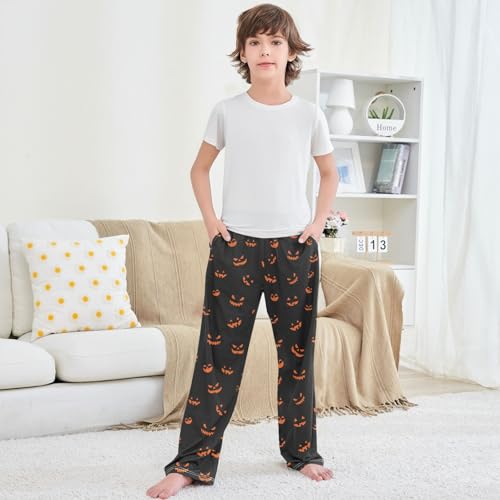 Boy's Pants Halloween Pumpkin Face Black Jogger Pants Elastic Waist Long Bottoms Trousers with Pockets 6-14 Years 4