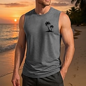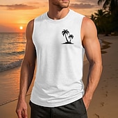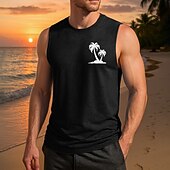 More information about Men's Vest Top Undershirt Sleeveless Shirt Sleeveless Crewneck Spring & Summer Coconut Tree Pattern Fashion Designer Vacation Street Going out Black White Blue Top Tee for Men