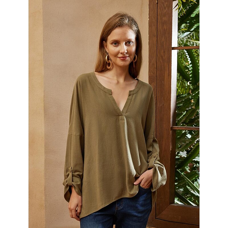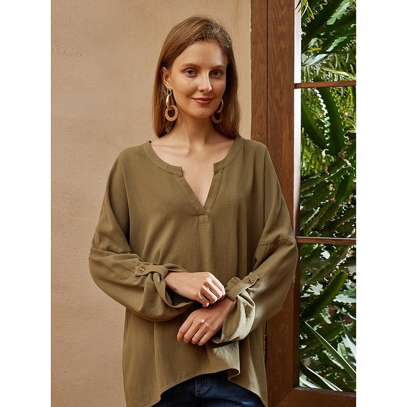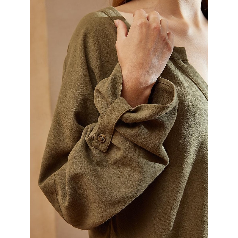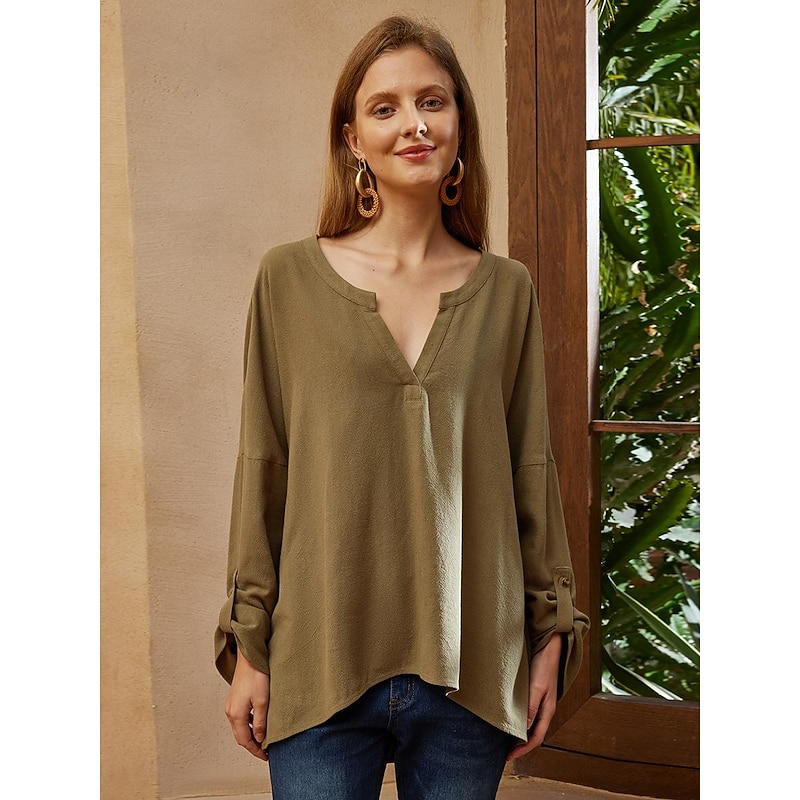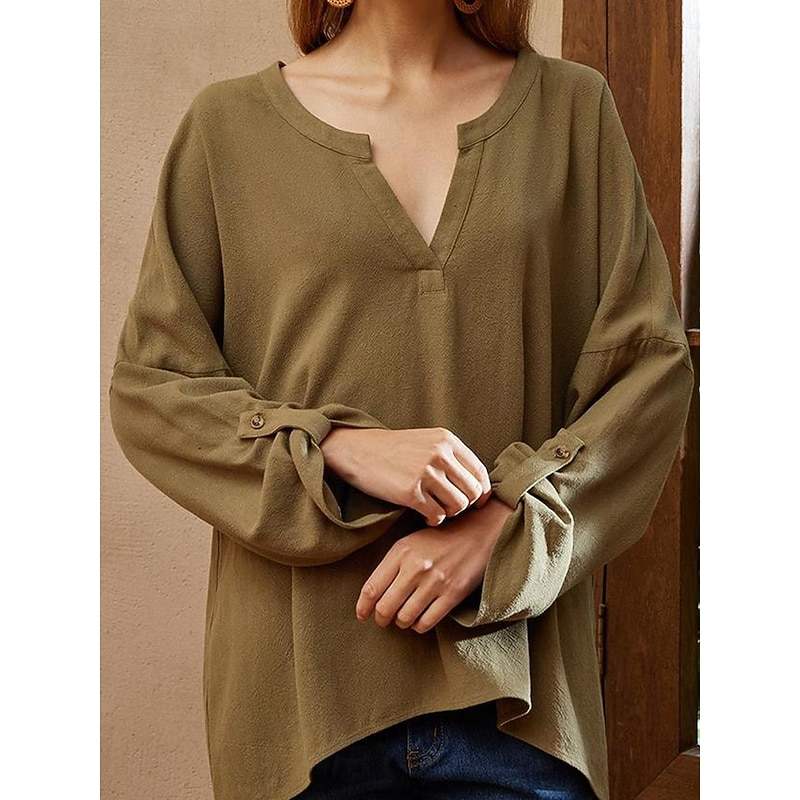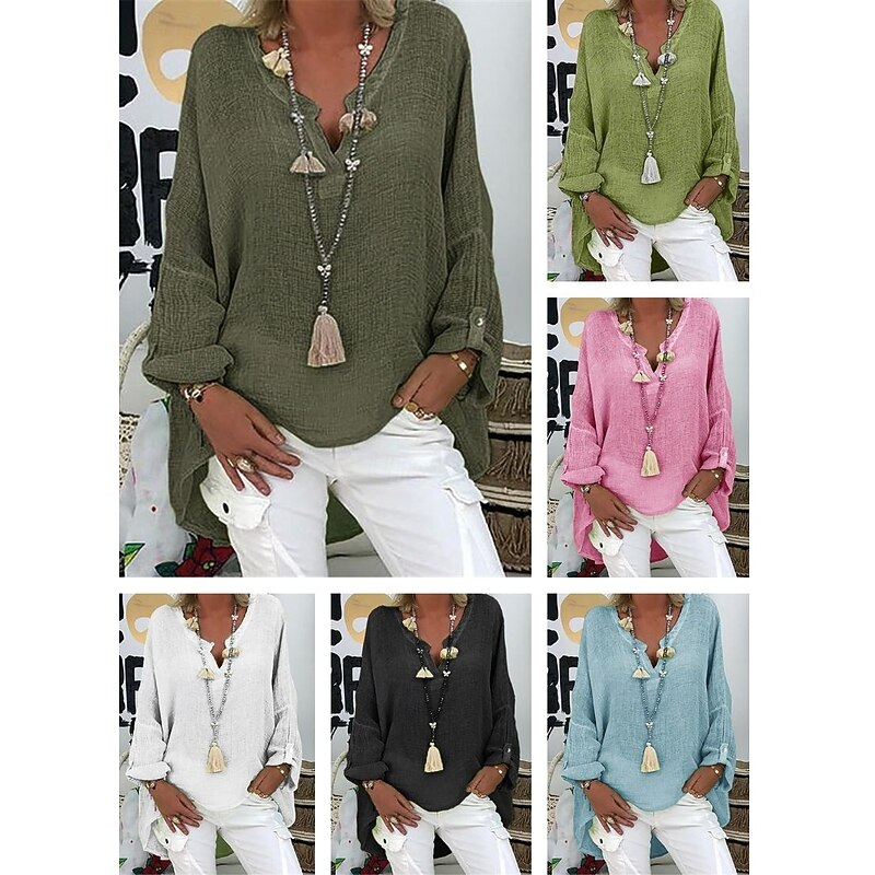 More information about Women's Shirt Blouse Cotton Linen Shirts Solid Basic Long Sleeve V Neck Long Tops Casual Daily Black White Pink Army Green Blue Summer Spring