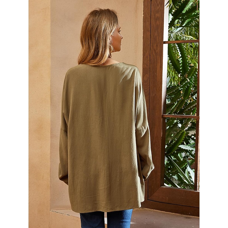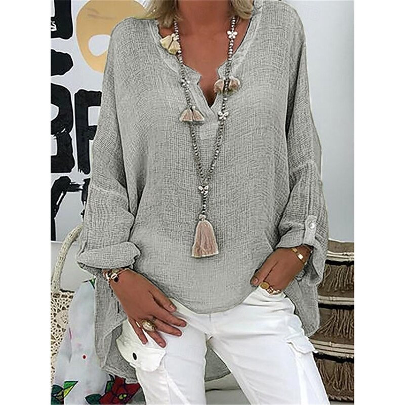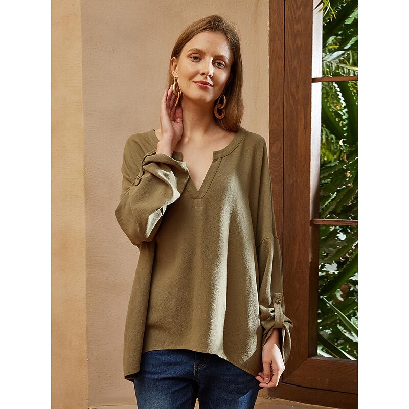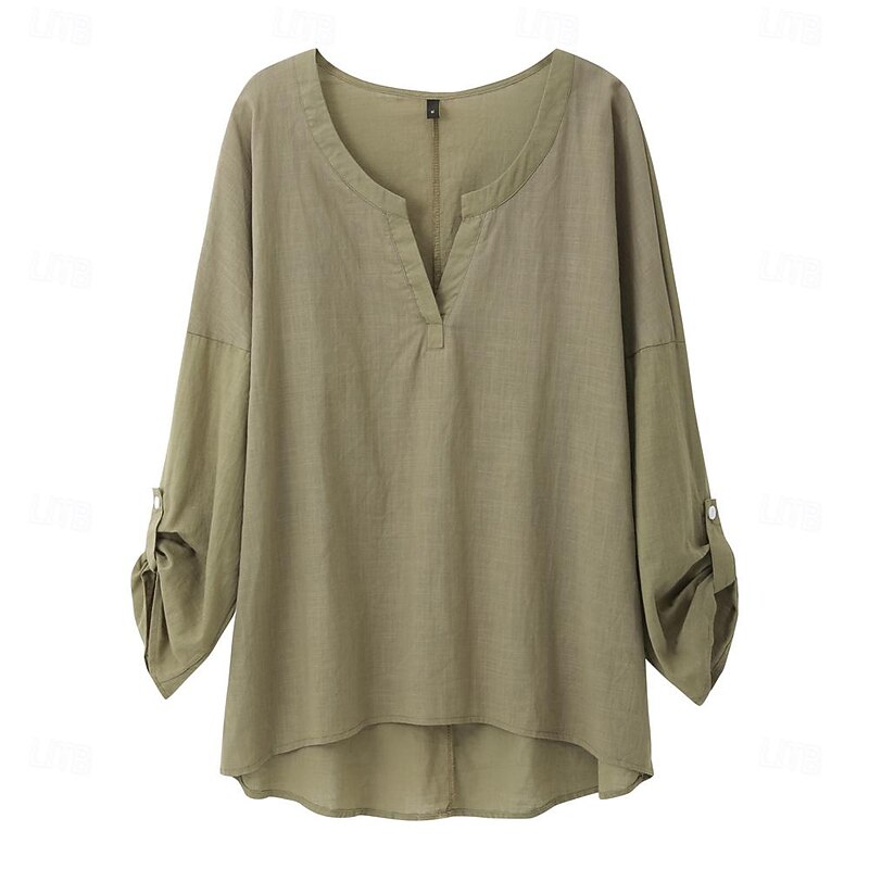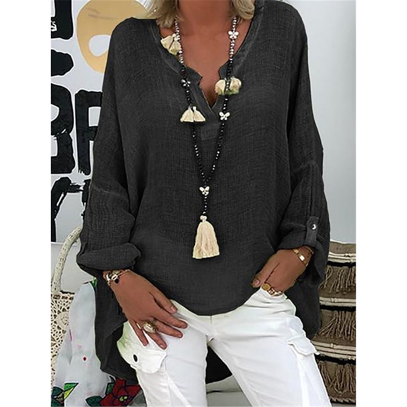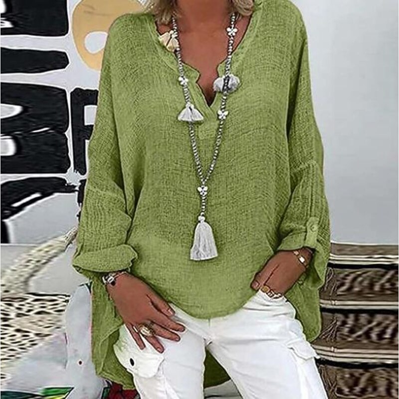 More information about Women's Shirt Blouse Cotton Linen Shirts Solid Basic Long Sleeve V Neck Long Tops Casual Daily Black White Pink Army Green Blue Summer Spring