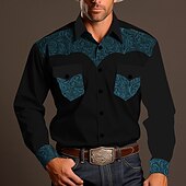 More information about Men's Shirt Western Shirt Cowboy Shirt Long Sleeve Vintage Western Style Outdoor Street Casual Daily Fall & Winter Turndown Buttons Print Blue Brown