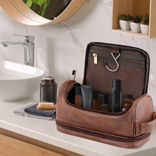 • 💝【Waterproof PU Leather Material】travel toiletry bag is made of high quality PU leather, water-resistant, lightweight, durable, and easy to wipe clean. Protect your toiletries from splashing water. This mens toiletry bag is a practical travel essentials. It is also very suitable for daily use. It can be used as a toiletry bag, storage bag, shaving bag or makeup bag.