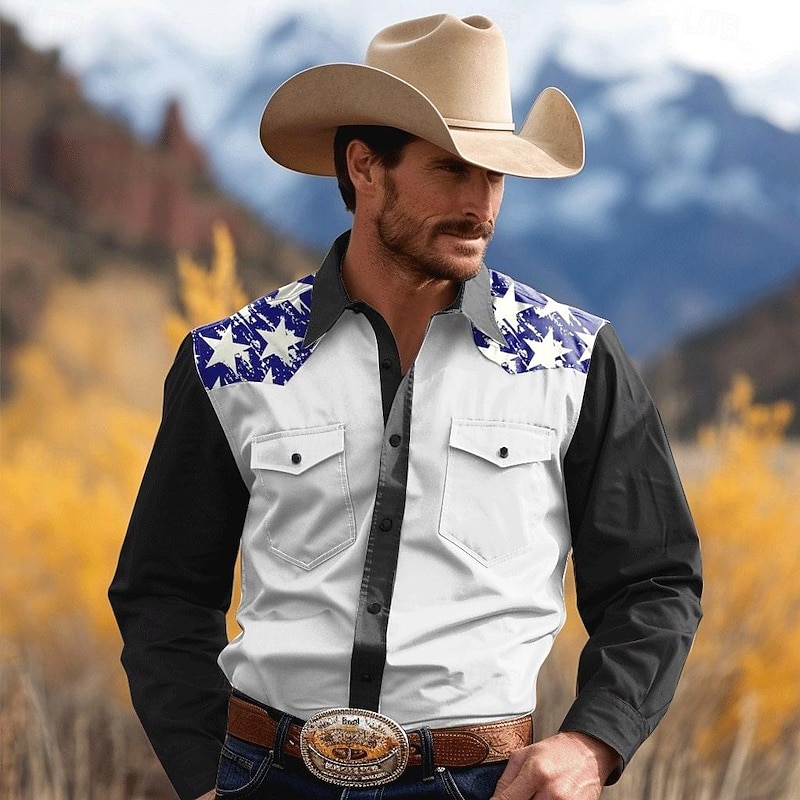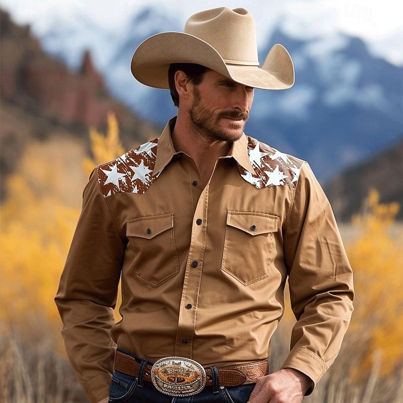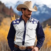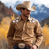 More information about Men's Pentagram Western Shirt Button Up Shirt Cowboy Shirt Long Sleeve Vintage Western Style Daily Wear Winter Spring & Fall Turndown Collared Shirts 3D Print Front Pocket Black White Navy Blue Khaki