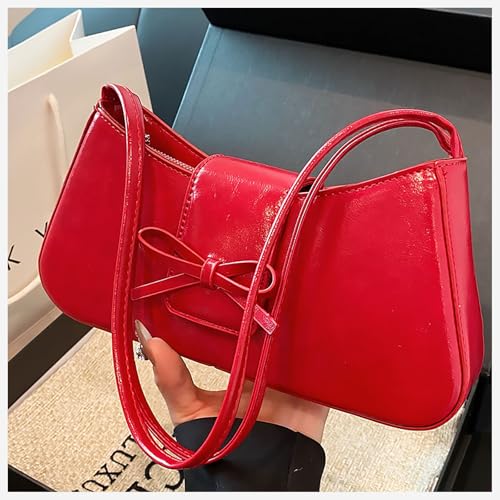 • Ample Storage Space--This red bow purse for women includes two pockets: the main pocket is ideal for storing your wallet, mobile phone, tissues, lipstick, and makeup essentials. Additionally, a side pocket with a zipper securely holds important cards, such as ID and bank cards. It meets your storage needs for any occasion.