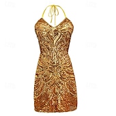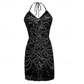 More information about The Great Gatsby Vacation Dress Short Length Cocktail Dress Flapper Headband Sleeveless Cosplay Wedding Guest Sequins Sequin Halter Neck Fancy Dress Women's Halloween Party / Cocktail Wedding