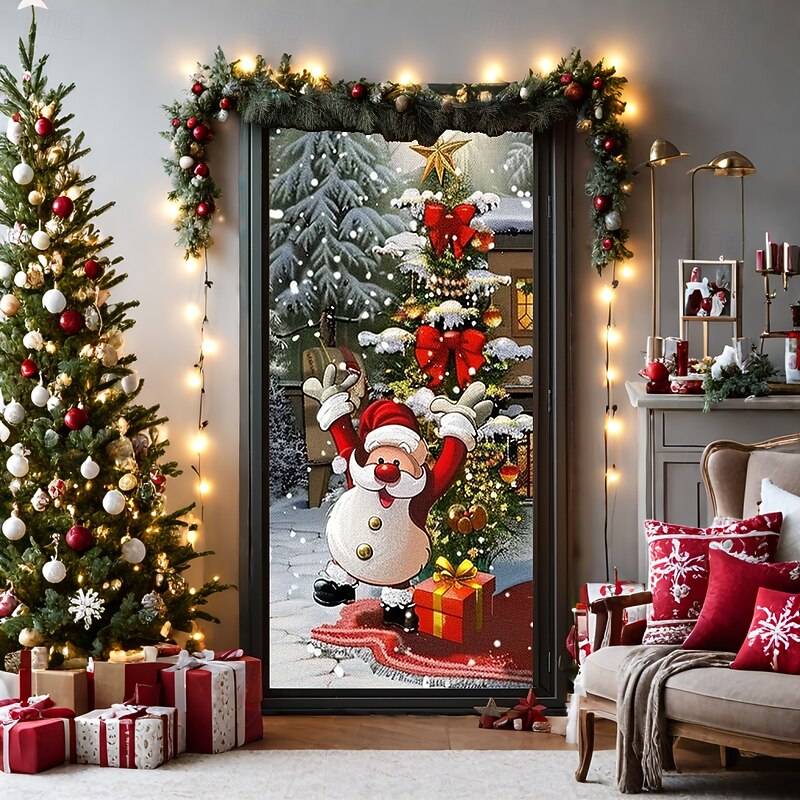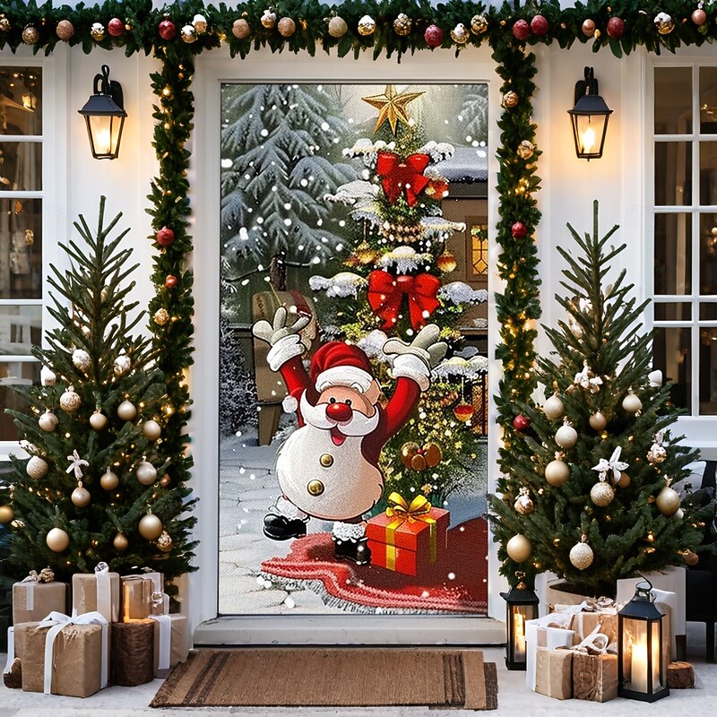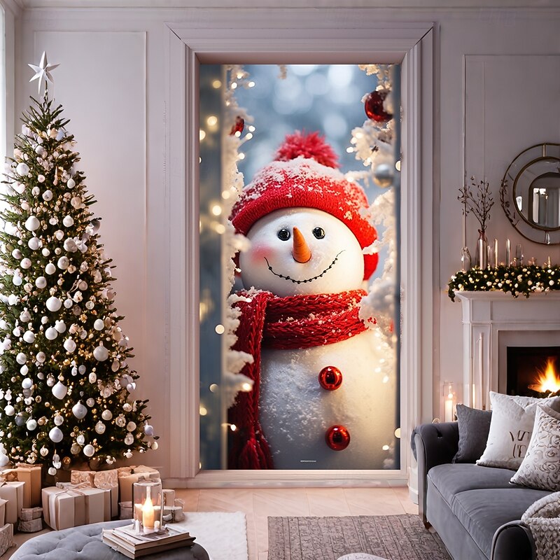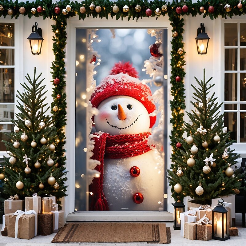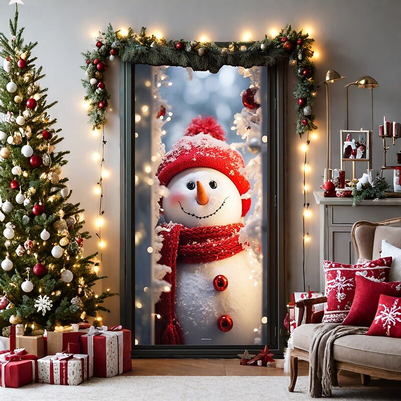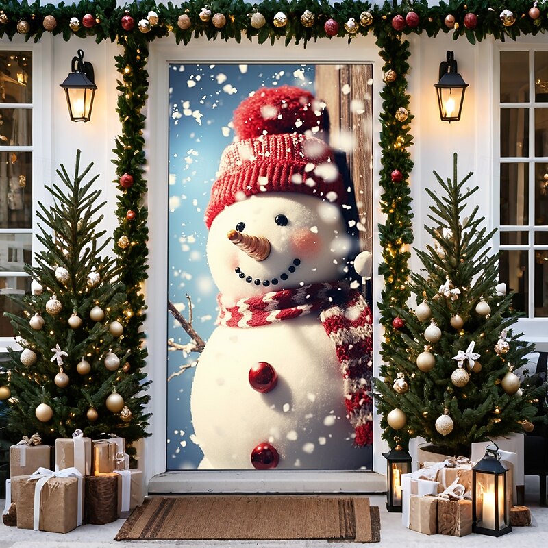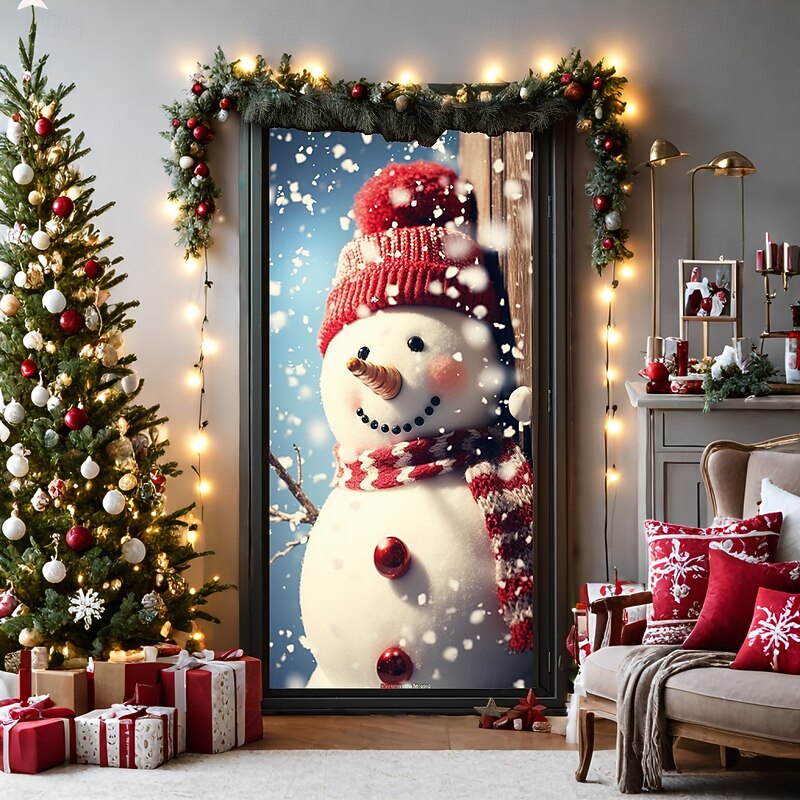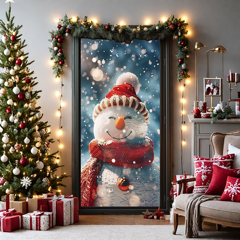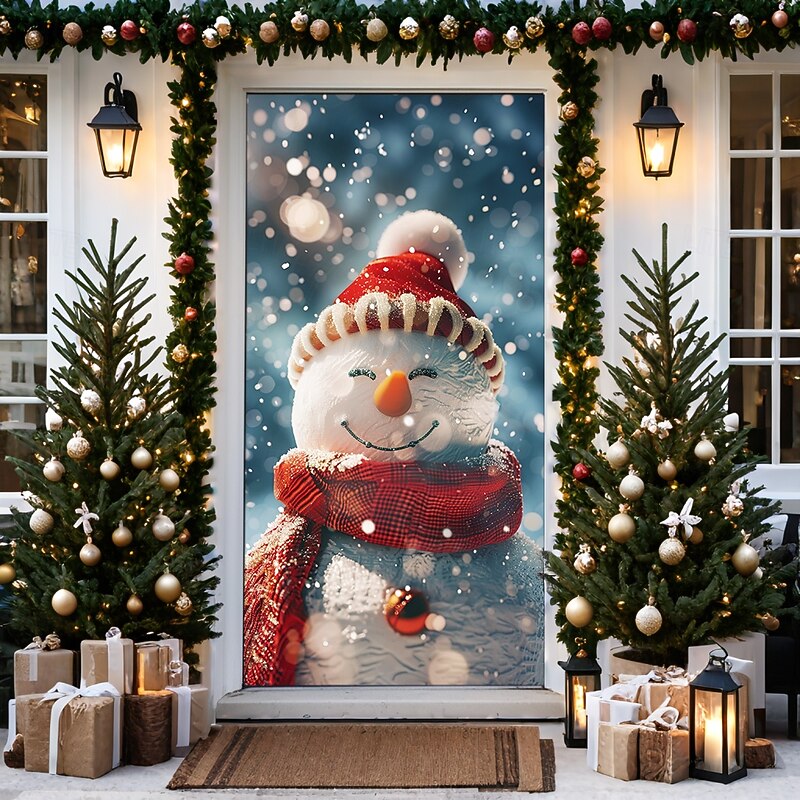 HOT ! Christmas Door Decorations Door Covers Xmas Snowman Door Tapestry Door Curtain Decoration Backdrop Door Banner for Front Door Farmhouse Holiday Party Decor Supplies Indoor/Outdoor