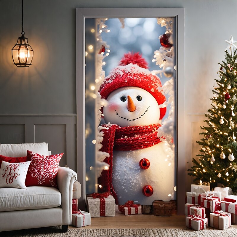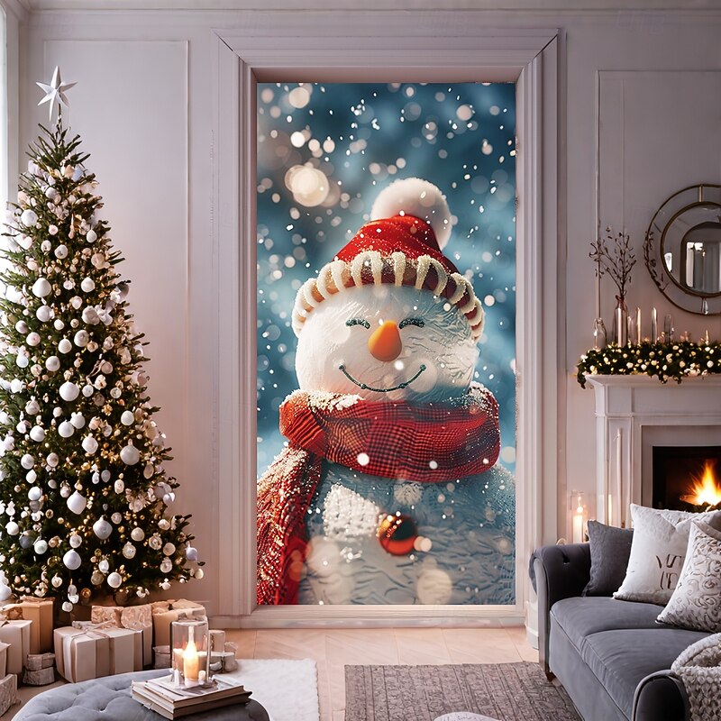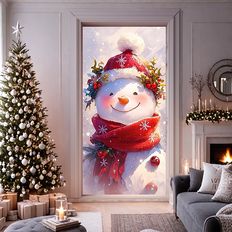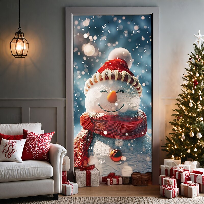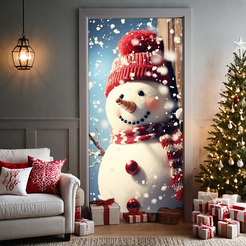 Christmas Door Decorations Door Covers Xmas Snowman Door Tapestry Door Curtain Decoration Backdrop Door Banner for Front Door Farmhouse Holiday Party Decor Supplies Indoor/Outdoor 18