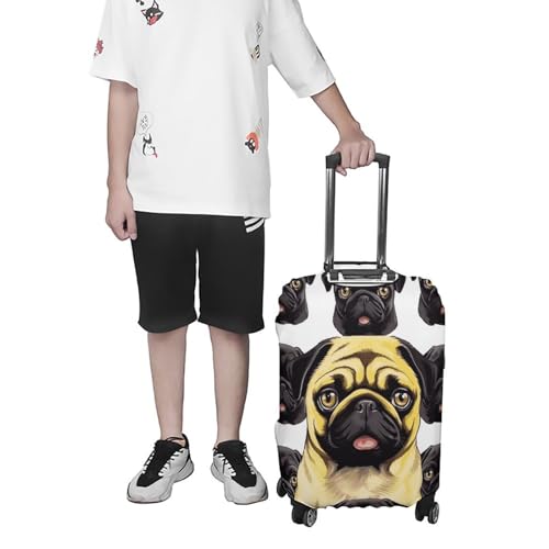 Black Yellow Pug Printed Luggage Cover Protector, Fits 18-32 Inch Luggage 7