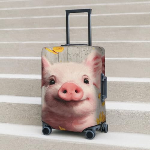 Cute Piglet Sunflowers Butterflies Elastic Travel Luggage Covers Dustproof Scratch-Resistant Suitcase Protector Fit 22-24 Inch 1