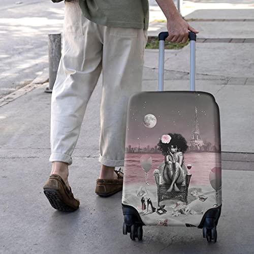 African American Black Girl Luggage Protective Cover Pink and Black Beach Paris Eiffel Tower Suitcase Cover Fit 22-24 Inch Luggage 7