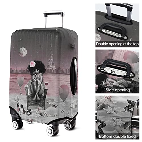 HOT ! African American Black Girl Luggage Protective Cover Pink and Black Beach Paris Eiffel Tower Suitcase Cover Fit 22-24 Inch Luggage