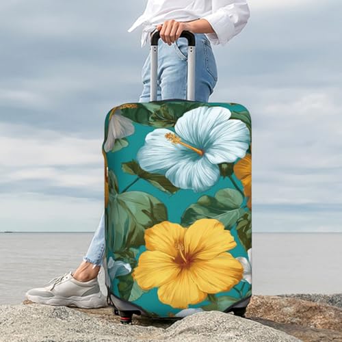 Blue Yellow White Hibiscus Flowers Tropical Elastic Travel Luggage Covers Dustproof Scratch-Resistant Suitcase Protector Fit 22-24 Inch 7