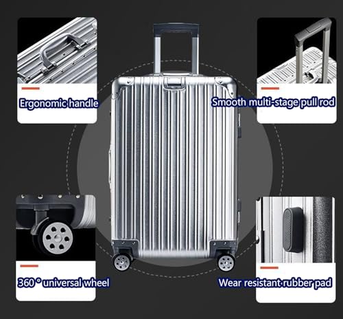 • High standard materials bring strength and safety. 100% aluminum alloy travel suitcase: This suitcase is made of lightweight aluminum magnesium alloy, which is scratch resistant and durable. The outer frame and four corner protectors are reinforced with all aluminum alloy, providing additional toughness and impact resistance