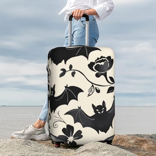 HOT ! Bat Floral Halloween Luggage Cover Elastic Washable Protector Anti-Scratch Travel Suitcase Covers With Concealed Zipper For 18-32 Inch Luggage X-Large