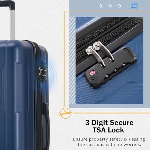 More information about 20inch+24inch Blue ABS Hardside Luggage for Women and Men, Lightweight Luggage Suitcases with TSA Lock, Womens Luggage with Spinner Wheels Back to School