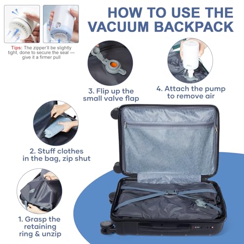 • Built-in Vacuum Compression Layer: Includes 2 versatile vacuum pumps (wall-powered & rechargeable) for multi-scenario use, reducing clothing volume by 60% for maximized packing efficiency.