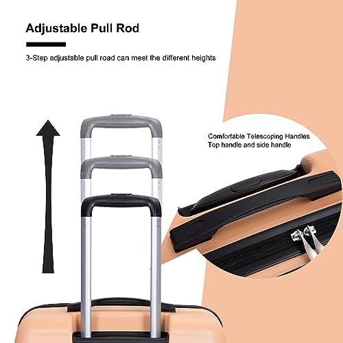 HOT ! Expandable 3 Piece Luggage Sets PC Lightweight & Durable Suitcase with Two Hooks, Spinner Wheels, TSA Lock, (21/25/29) Peach
