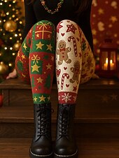 More information about Women's Leggings Vacation Vintage Ethnic Style Full Length High WaistPantsUgly Christmas Graphic Santa Claus Christmas 3D Print Novelty Quick Dry Breathability Soft Stretchy Outdoor Home Causal Red