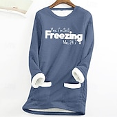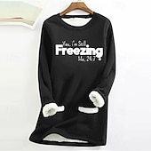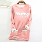 More information about Women's Fleece Lined Pullover Sweatshirt Pajamas Pullover Yes Im Cold Letter Streetwear Casual Long Sleeve Crew Neck Regular Tops Street Holiday Pocket Print Black Pink Blue Light Grey