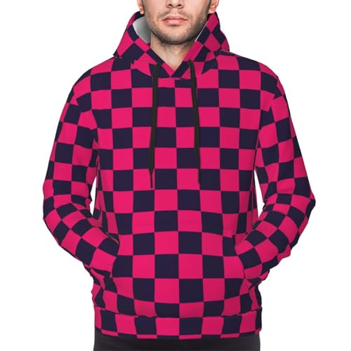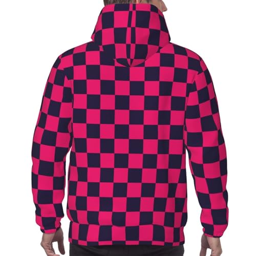 HOT ! Hoodies For Men - Navyblue Pink Checkered Print Long Sleeve Casual Men'S Hoodies & Sweatshirts Pullover With Pocket