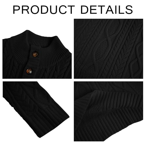 Gafeng Mens Mock Neck Pullover Sweater Casual Slim Fit Cable Knit Button Up Thermal Lightweight Winter Sweaters Knitwear 4