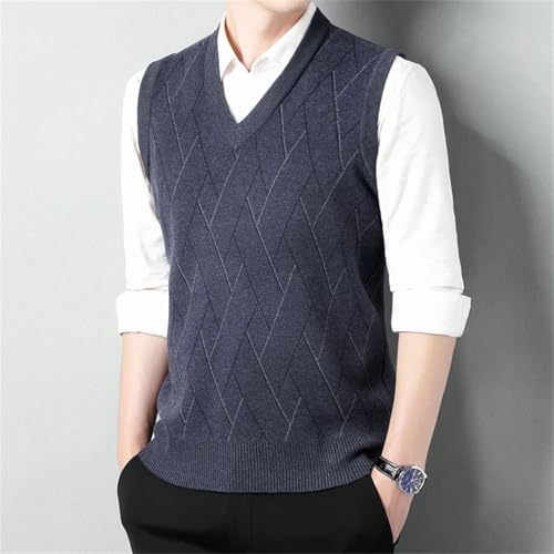 Men’S Thickened Striped V-Neck Knitted Sweater Vest Warm Casual Sleeveless Solid Color Pullover Tank Top 4