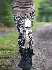 More information about Women's Leggings Vacation Vintage Fashion Full Length High WaistPantsHalloween Graphic Skull Printing Soft Breathable Stretchy Outdoor Vacation Street milk white Dark-Gray Spring Fall Winter Skinny
