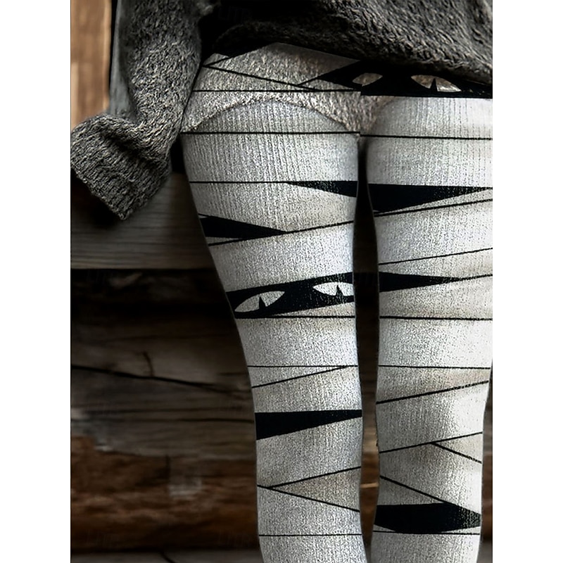Women's Leggings Vacation Vintage Fashion Full Length High WaistPantsHalloween Graphic Skull Printing Soft Breathable Stretchy Outdoor Vacation Street milk white Dark-Gray Spring Fall Winter Skinny 9