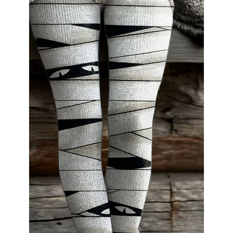 Women's Leggings Vacation Vintage Fashion Full Length High WaistPantsHalloween Graphic Skull Printing Soft Breathable Stretchy Outdoor Vacation Street milk white Dark-Gray Spring Fall Winter Skinny 10